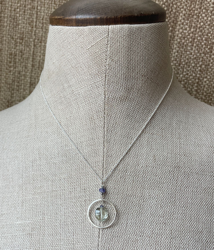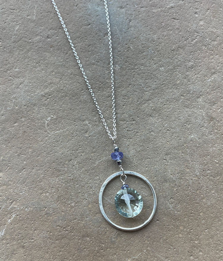 Green amethyst, tanzanite, sterling silver.