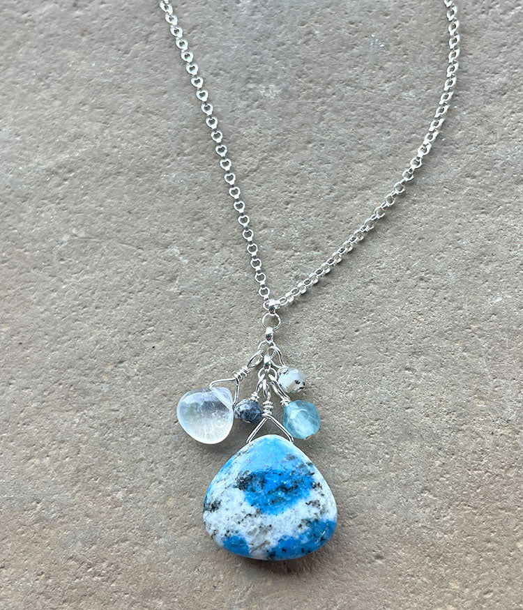 K2 jasper, rainbow moonstone, quartz, dendritic opal, sterling silver.